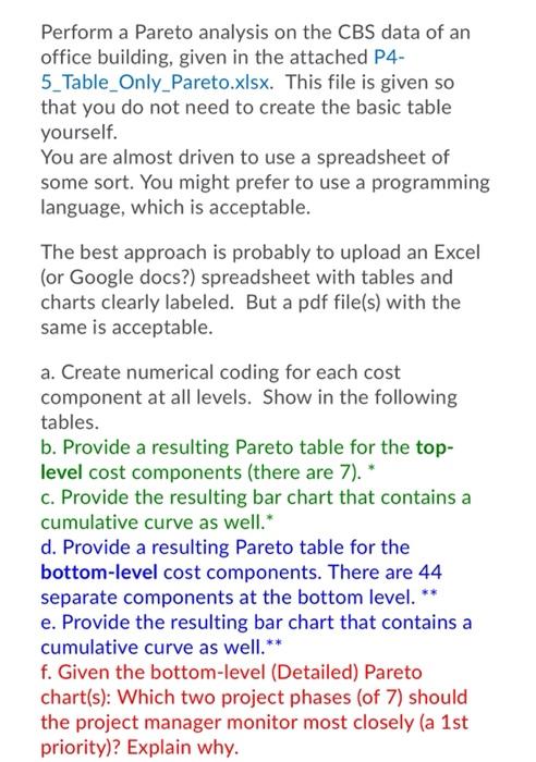 Perform A Pareto Analysis On The Cbs Data Of An Chegg Com